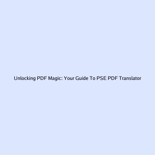 Unlocking PDF Magic: Your Guide to PSE PDF Translator